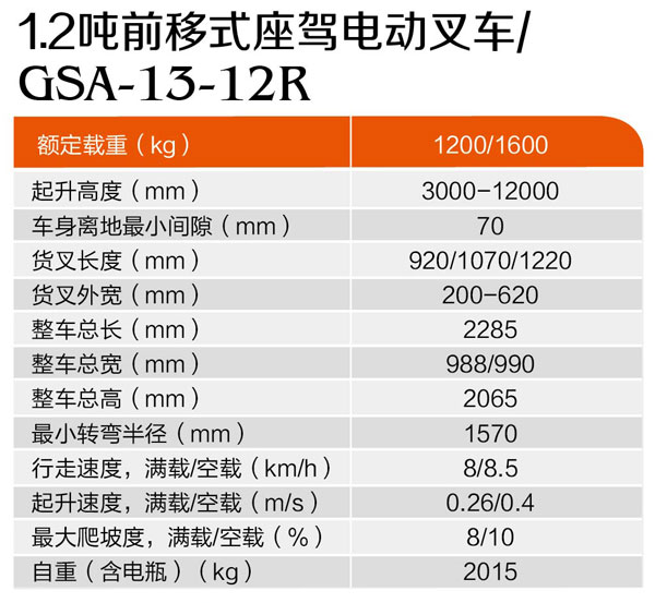 1.2噸前移式座駕電動(dòng)叉車GSA-13-12R